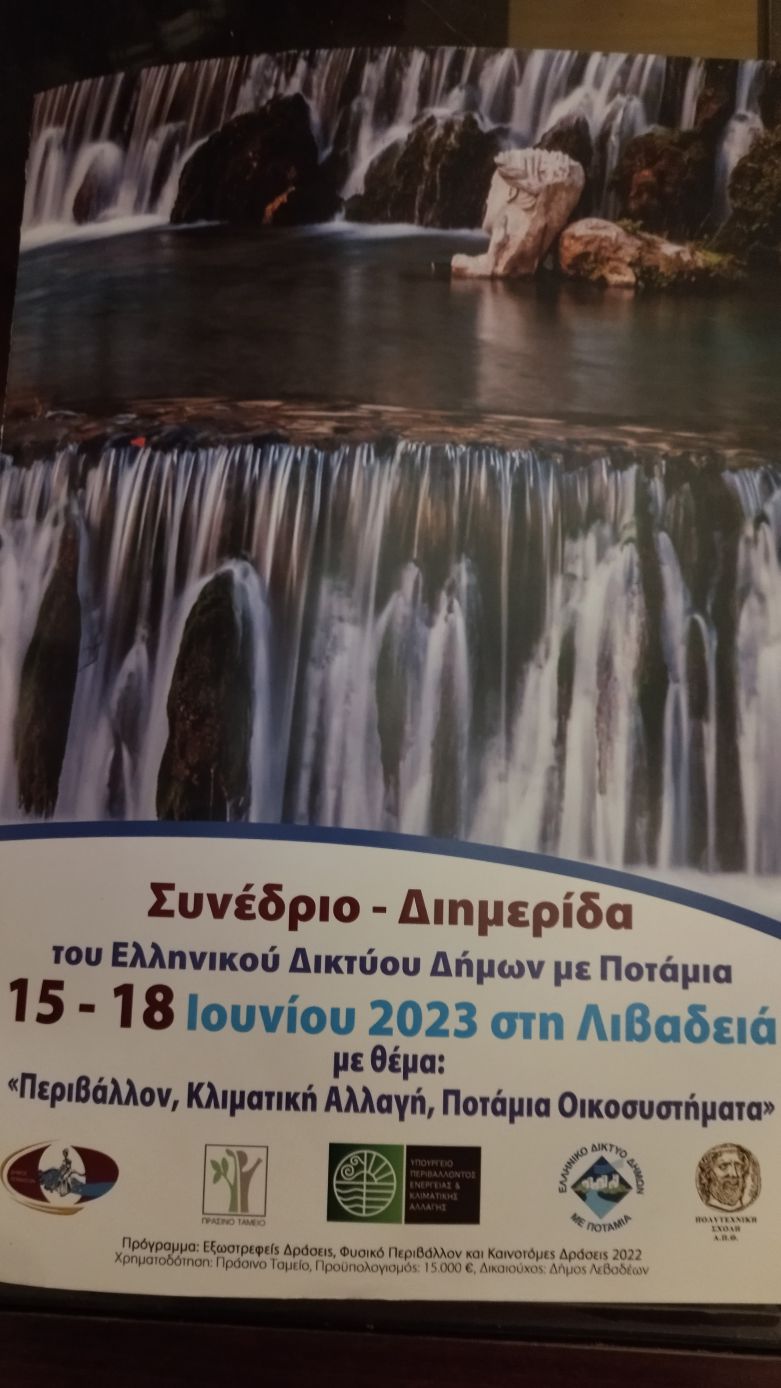 Ολοκληρώθηκαν με επιτυχία οι εργασίες της Διημερίδας με τίτλο: «Περιβάλλον, Κλιματική αλλαγή, Ποτάμια Οικοσυστήματα», που διοργάνωσε στις 15 & 16 Ιουνίου ο Δήμος Λεβαδέων σε συνεργασία με το Ελληνικό Δίκτυο Δήμων με Ποτάμια, το Πράσινο Ταμείο και την Πολυτεχνική Σχολή του ΑΠΘ.
