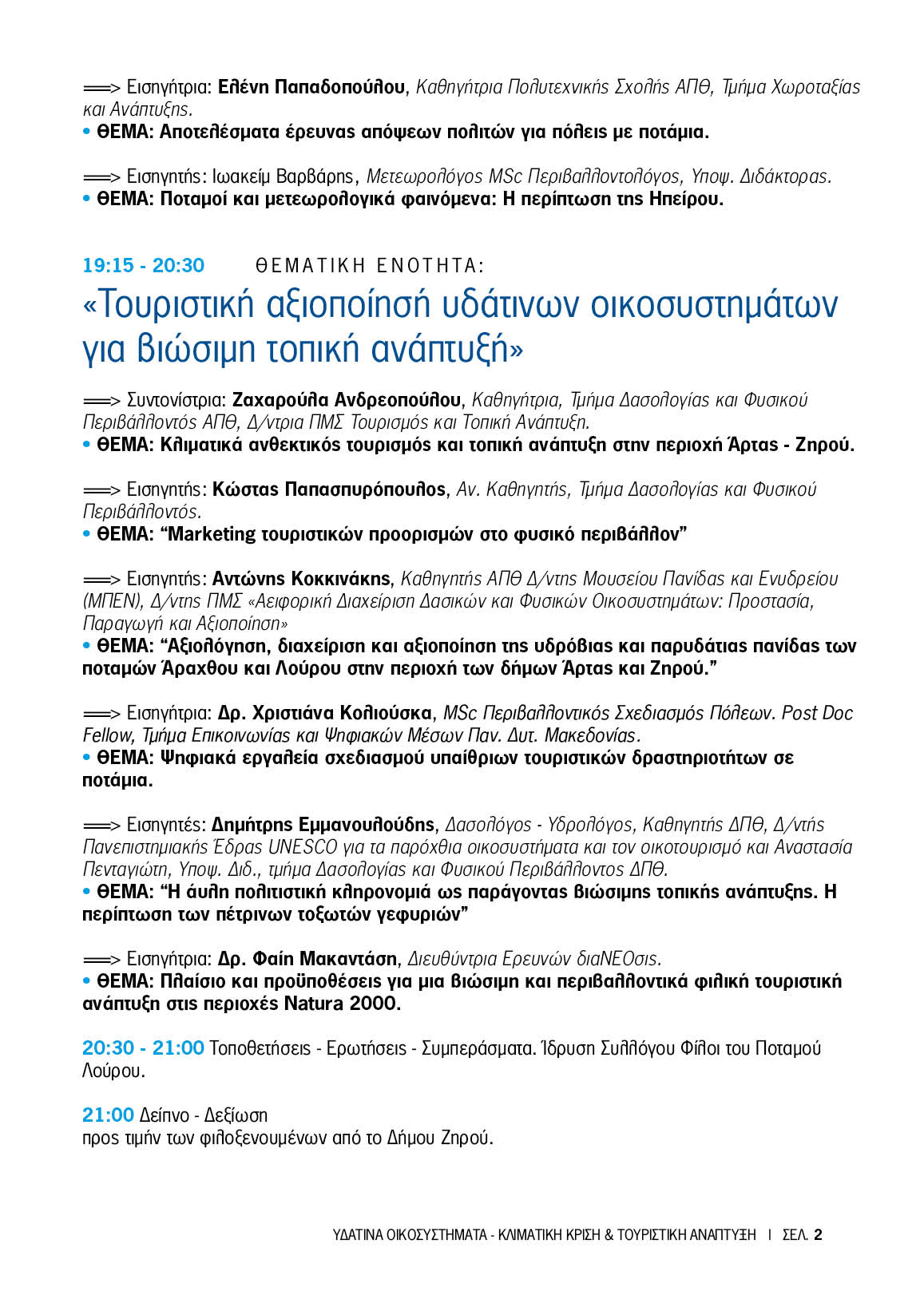 “Υδάτινα Οικοσυστήματα, Κλιματική Κρίση και Τουριστική Ανάπτυξη”