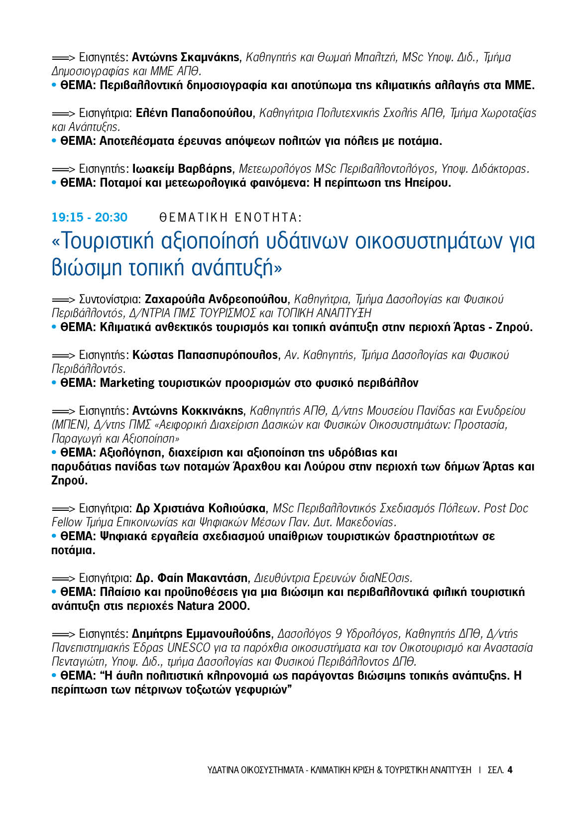 Εκδηλώσεις με θέμα: "Υδάτινα Οικοσυστήματα, Κλιματική Κρίση και Τουριστική Ανάπτυξη"